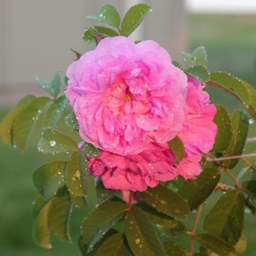 Pink with fragrant stamens offer strong fragrance. Average diameter 2.75" double blooms; As occasional repeat later in the season. Breeder unknown, prior to 1600. From helpmefind.com: Recent research in Japan indicates that both summer and autumn damask roses originated with (R. moschata X R. gallica) X R. fedtschenkoana. Gene, Vol. 259, Issues 1-2, 23 December 2000, Pages 53-59. Dickerson says it's probably extinct. In 1959 Rowley reported that Graham S. Thomas reintroduced the Autumn Damask into cultivation. The Audibert catalogue differentiates between 'Tous les mois' and 'Quatre Saisons' According to Thory 'Damascena perpetua' = 'Quatre Saisons continue' is a single form with 8-10 petals. See references (1817).