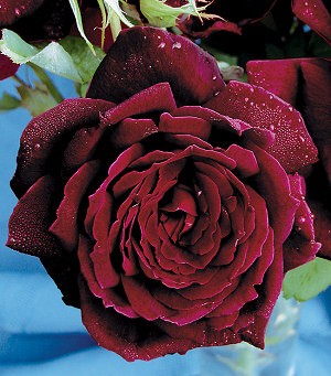 Dark brown buds open to very deep red double blooms (up to 50 petals) that offer a strong old rose-sweet fragrance; Average diameter 5" blooms are in high centred form on single stems; Matte, dark green, leathery foliage; Benefits from spring pruning and freeze protection. Bred by Swim & Weeks (United States, before 1963). Introduced in United States by Weeks Wholesale Rose Grower, Inc. in 1964 as 'Oklahoma'